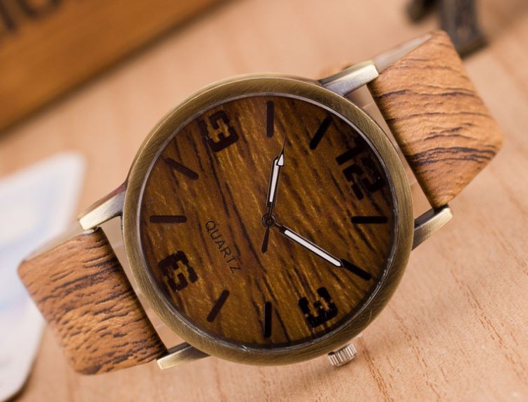 Women Men Quartz Wristwatches Casual Wooden Color Leather Strap Wood Watch Reloj Mujer Women Watch Montre Homme